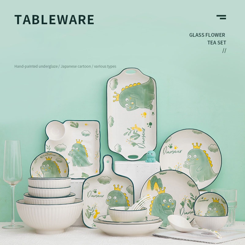 set bát đĩa hình khủng long siêu kute free ship