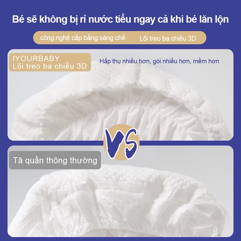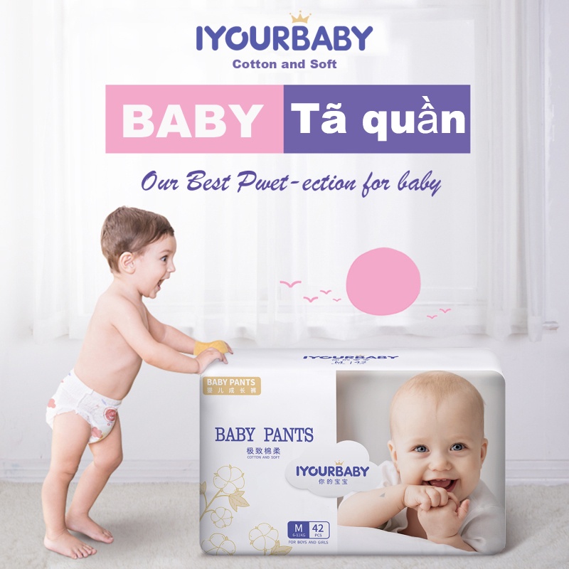 Tã/Bỉm quần IYOURBABY êm mềm khô thoáng đủ size M42/L38/XL36/XXL32/XXXL30 free ship